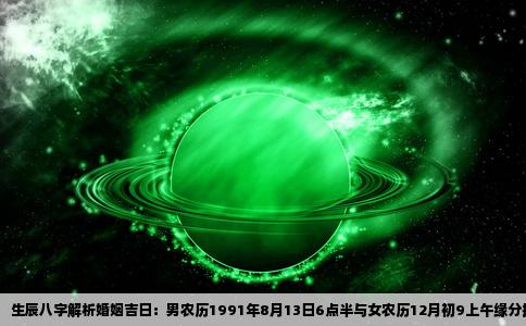 根据中国传统的命理学,生辰八字是推算个人命运与婚配吉凶的重要依据。下面,我们将对男农历1991年8月13日6点半出生与女农历12月初9上午出生的两位主角的生辰八字进行详细解析,探讨他们的婚姻吉日。