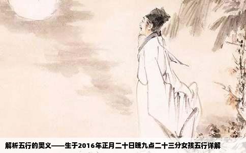 生于2016年正月二十日晚上九点二十三分的女孩,按照八字学说与五行相生相克的理论,其五行属性与命运息息相关。