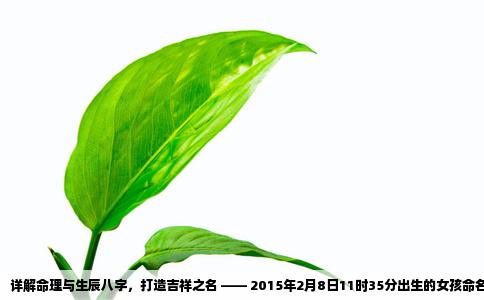 根据生辰八字起名字,是中华民族传统文化的瑰宝之一。2015年2月8日11时35分出生的女孩,如何依据其八字信息选择一个既符合命理又吉祥美好的名字呢?下面我们将进行详细解析。生辰八字解析该女孩的生辰八字为:乙未年、戊寅月、丙戌日、甲午时。根据八字学说,我们可以分析出其五行属性及命理特点。命名原则1...