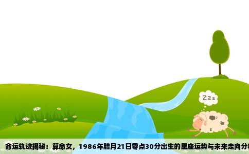 命运解读与星座概述算命女,出生于农历1986年腊月21日凌晨0点30分,这一特殊的时刻与日期不仅代表了她的生日,更在命运之书上留下了独特的印记。今天,我们将通过星象、命理等手段,对这位女士的命运进行一番探索。从星座来看,这一出生时间落于摩羯座(Capricorn)的最后几天。摩羯座以其稳定、执着...