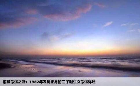 命运,这个词对于每个人来说都有着不同的含义和解读。根据中国传统命理学,出生的年、月、日、时都会对一个人的命运产生影响。本文将详细解析一位1982年农历正月初二凌晨两点出生的女性的命运走向。命盘基础此女性生于1982年农历正月初二子时,命盘基础颇为坚实。根据八字学说,年月日时的组合形成了她生命中的基本...