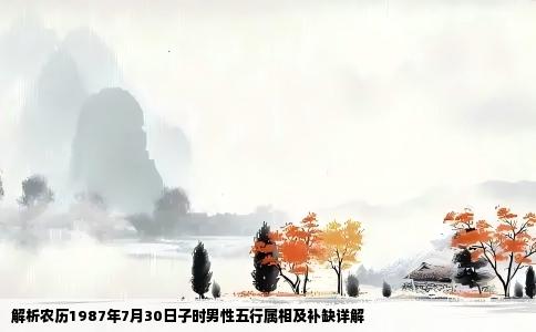 根据农历出生年月日时五行学说,1987年农历七月三十日子时出生的男性,其五行属性与缺属可分析如下:五行属性 1. 年命所属:依据八字四柱中年份的干支组合,推算出此人在1987年属兔。而在传统命理中,此年之命被认定为丁卯年,其主色为“火”。2. 月日时的五行成分:该月出生日时还需结合具体的八字四柱来...