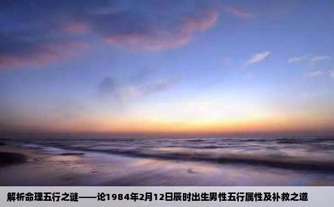 在命理学中,五行属性对于个人命运有着重要的影响。本文将针对1984年2月12日辰时出生的男性,详细分析其五行属性缺失,并提出有效的补充建议。分析八字该男性出生年月的八字信息,对应的五行关系以及缺何种元素属性。1984年为甲子年,甲木为主,但具体还需结合月、日、时来分析。五行属性分析根据八字分析,...