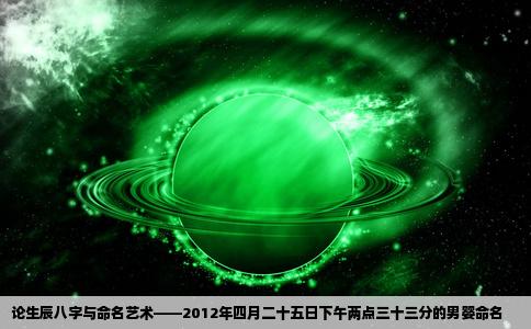 在中华文化的传统中,为新生儿起名是一件既庄重又充满期待的事情。特别是在中国,生辰八字被认为是影响一个人一生运势的重要因素,因此在为孩子起名时,许多家长会考虑孩子的生辰八字。本文将围绕2012年四月二十五日下午两点三十三出生的男婴的生辰八字,探讨如何为其起一个合适的名字。