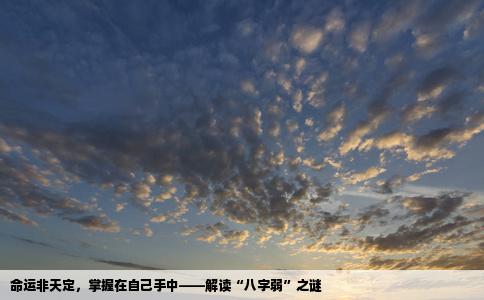 在现代社会中,人们常常会因为命运的未知而感到迷茫和困惑。尤其是在面对一些所谓的“命理预测”时,更是心生疑虑。其中,“算命先生说我八字弱”这样的说法,更是让许多人忧心忡忡。究竟什么是八字弱?有没有真正的高手大师可以为我们解读?我们将从多个角度来探讨这一问题。