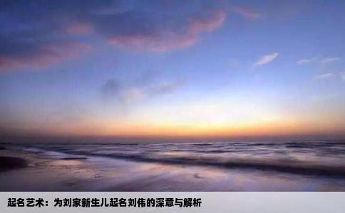 在中国文化中,给孩子起名是一件既庄重又充满期待的事情。特别是在姓刘的家庭中,为新生儿起一个既有寓意又响亮的名字,更是一项重大的决定。在这篇文章中,我们将深入探讨为何选择“刘伟”这个名字,以及其中蕴含的深远意义。
