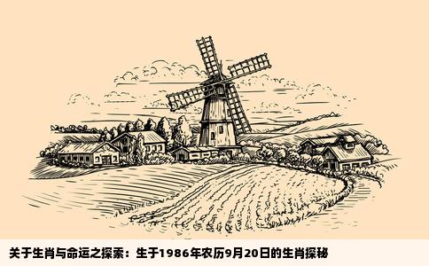 我们需要了解中国的十二生肖制度。这套传统的天文历法制度与天文周期的星座方位对应相关联,具体是将鼠、牛、虎、兔、龙、蛇、马、羊、猴、鸡、狗、猪等十二种动物作为代表符号,用于记录和表达农历的年岁循环。每一年由一个生肖对应,如此循环往复。针对问题“我是1986年农历9月20日出生的,请问我生肖属什么?”根...
