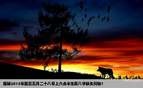在中国传统命理学中,生辰八字是一个人出生时的干支历日期。它由年、月、日、时四组干支组成,反映了人与天地宇宙间的微妙关系。现在,我们以2015年阴历五月二十八早上六点半的生辰为例,来探讨其八字中可能缺少的元素。根据传统命理学的推算,2015年阴历五月二十八这天的生辰八字中,时辰为早上六点半,属于丙午时...