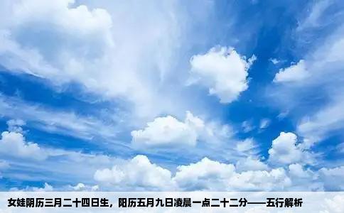 在中华文化的传统中,根据阴阳五行的理论,为新生儿解析五行属性是一项重要的文化活动。本文将详细解析在阴历三月二十四日阳历五月九日凌晨一点二十二分出生的小女孩的五行属性及其相关解析。根据阴阳历的换算,该女孩的出生日期落在阴历三月二十四日,这一日位于春季之中,正是阳气渐长之时。此时出生的小孩,根据天干地支...