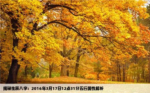 在中华传统文化中,生辰八字与五行缺失的解析对于个人命运有着重要的影响。我们将详细解析2016年3月17日12点31分出生的宝宝五行属性中缺少哪一种元素。基本背景根据传统命理学,人的命运与出生时的天时地利人和密切相关。其中,五行理论是命理学的重要组成部分,它包括金、木、水、火、土五种元素,这五种元素代...