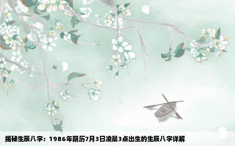 生辰八字,是中国古代预测命运的一种方式,它以人出生的年、月、日、时为基点,排出四组天干地支,即八字。我们将揭示阴历1986年7月3日凌晨3点出生的生辰八字。我们要明确农历1986年对应的是丙寅年。接下来是月份的转换,农历七月对应的是丁未月。日和时的生辰则需要进一步的干支纪时来确定。凌晨3点可以近似转...