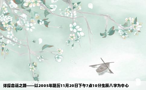 在中华文化的深厚土壤中,生辰八字一直被视为揭示个体命运的重要依据。今天,我们将以2005年阴历11月20日下午7点10分的生辰八字为中心,深入探讨其蕴含的命运密码。生辰八字概述生辰八字,又称四柱八字,是根据一个人出生的年、月、日、时来推算出的四组天干地支的组合。这四组干支反映了人出生时天地间五行的气...