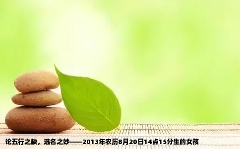 在中国传统文化的观念中,给新生儿取名是一项十分重要的任务,既要考虑到易读易记、响亮好听等因素,也要考虑到命理、五行等复杂因素。下面我们就来探讨一下,2013年农历8月20日14点15分出生的女孩,如何根据五行理论来分析她缺什么元素,以及如何选取一个合适的名字。五行分析根据农历出生日期,我们可以推算出...