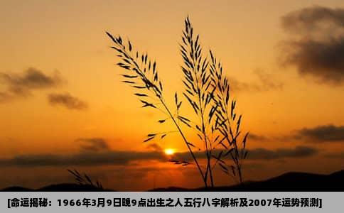 五行八字详解在命理学中,根据一个人出生的年、月、日、时,可以推算出其五行属性及八字格局。现针对您所提供的信息进行解析:1. 八字组成:出生于1966年3月9日晚9时的人,年柱为丙午,月柱为乙卯,日柱需根据农历日期确定,而时柱则为亥时。2. 五行分析: - 年柱丙午属火,代表活力与热情。 ...