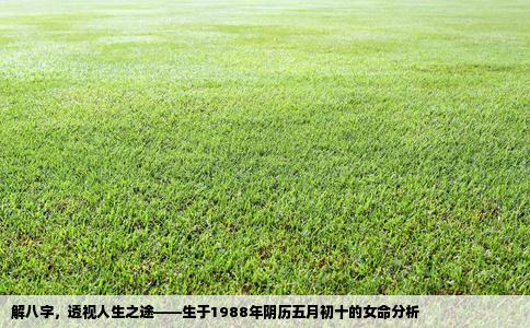 命理之说,流传千年。人的八字,隐含着天地间之奥秘,藏着个人的命运密码。在此,我以专业的视角,解读您1988年阴历五月初十下午出生的女命八字,探索您的人生轨迹。从八字学理上看,您出生于戊辰年、壬午月、癸酉日,午时具体不详。在这其中,天干地支、五行属性、各月份节气变化皆为您命运的重要参照。您的命理格局、...