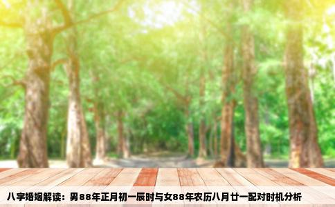根据八字学说的原理,结合男方生于1988年正月初一辰时和女方生于1988年农历八月廿一的生辰八字,我们来探讨今年适合他们结婚的良辰吉日。八字合婚基础分析男方八字中辰时出生,属龙,正月初一乃新年之始,象征着希望与新的开始。女方则属龙但具体时辰未详述,但根据农历八月廿一出生的信息,可以初步推断其命理特点...