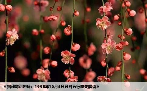 在中国传统的命理学中,生辰八字是推算一个人命运的重要因素之一。而八字中的五行分布,更是揭示了人的性格特征、运势走向等重要信息。本文将深入探讨1995年10月5日丑时所生之人五行缺失的具体情况。根据传统命理学的理论,人的八字由年、月、日、时四柱组成,每柱有一个天干和一个地支,共计八个字。这八个字分别对...