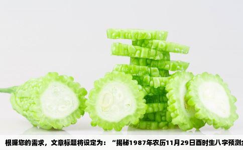 以下是对这一标题的详细回答: 揭秘1987年农历11月29日酉时生八字预测全解析在中国传统文化中,八字预测是一种重要的命理学术,通过八字可以推算一个人的命运走向。本文将详细解析1987年农历11月29日酉时生的八字预算,以帮助读者了解自己的命运走向。八字预算的构成八字预算,又称四柱预测,是根据一个...