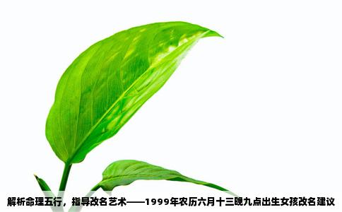在中国传统文化中,命名对于个人命运有着深远的影响。根据出生时间、日期以及五行理论,为1999年农历六月十三晚九点出生的女孩进行五行分析,并探讨改名对命运的影响,以助其人生发展。五行分析1. 八字命理:此女孩生于农历六月十三晚九点,根据八字推算,其命理中五行的分布情况为:金、木、水较为旺盛,而火、...