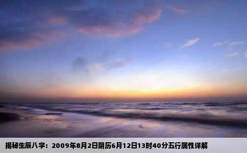 在中华传统文化中,生辰八字与五行缺失的解析对于个人命运有着重要的影响。本文将详细解读2009年8月2日阴历6月12日13时40分出生的人的五行属性及缺什么。我们要了解五行的基本概念。五行包括金、木、水、火、土,这五种元素相互制约、相互生长,构成了宇宙间的基本物质和能量。每个人的生辰八字都会对应到这五...