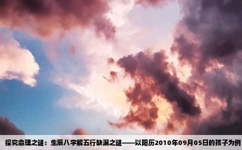 本文旨在分析一个出生于阳历2010年09月05日的孩子,根据其生辰八字探究五行中可能存在的缺失。生辰八字,又称四柱八字,是中国古代命理学的重要基础,通过年、月、日、时的天干地支组合,推算一个人的命运走向。五行学说则是中国古代的哲学思想,包括金、木、水、火、土五种元素,人的命运与之息息相关。生辰八字解...