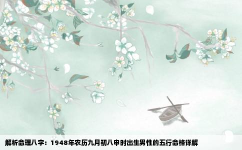 对于命理的探讨,八字学说有着千年的历史渊源。它基于人出生的年、月、日、时四个要素,结合阴阳五行的原理,对个体的性格、命运进行解读。以下,我们就来详细解析一位出生于1948年农历九月初八申时的男性的八字五行命格。八字构成根据农历算法,该男性出生于1948年农历九月初八,时辰为申时。将其转换为干支纪年法...