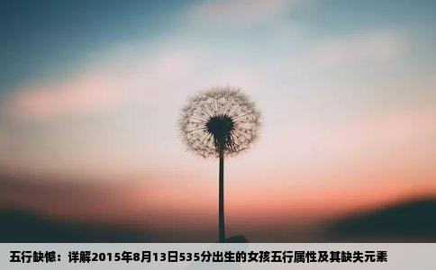 在中国传统命理学中,根据出生年月日时推算出的五行属性,可以揭示一个人的性格特点及运势走向。本文将详细解析2015年8月13日5点35分出生的女孩在五行中的属性及缺憾。五行解析根据天干地支和五行相生相克的原理,该女孩的出生时间对应的五行属性如下:1. 年份:2015年属羊,五行属土。 2. 月份...