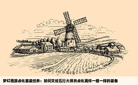 在《梦幻西游》这款经典的网络游戏中,玩家们常常会遇到各种挑战性的任务。其中,点化套装任务是一项重要的任务之一。当玩家需要将两件一模一样的装备交给五行大师进行点化时,应该如何操作呢?本文将详细介绍这一过程。任务准备在开始点化套装任务之前,玩家需要准备两件一模一样的装备。这些装备可以是武器、防具或者...