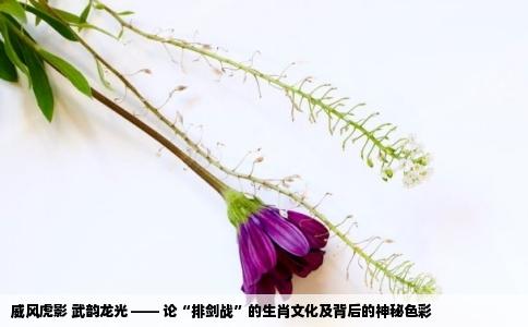 自古以来,武风威震,气韵凛然的排剑之战引人注目。当谈及“威风凛凛排剑战”时,猜一生肖,答案便是——虎。此生肖在中华文化中,代表着力量与勇猛,与排剑战的激烈场面有着不解之缘。排剑战与生肖虎的关联排剑战,作为传统武艺的一种形式,以排布密集的剑阵、气势如虹的战斗姿态闻名。其特点在于攻防有序、配合默契,给人...